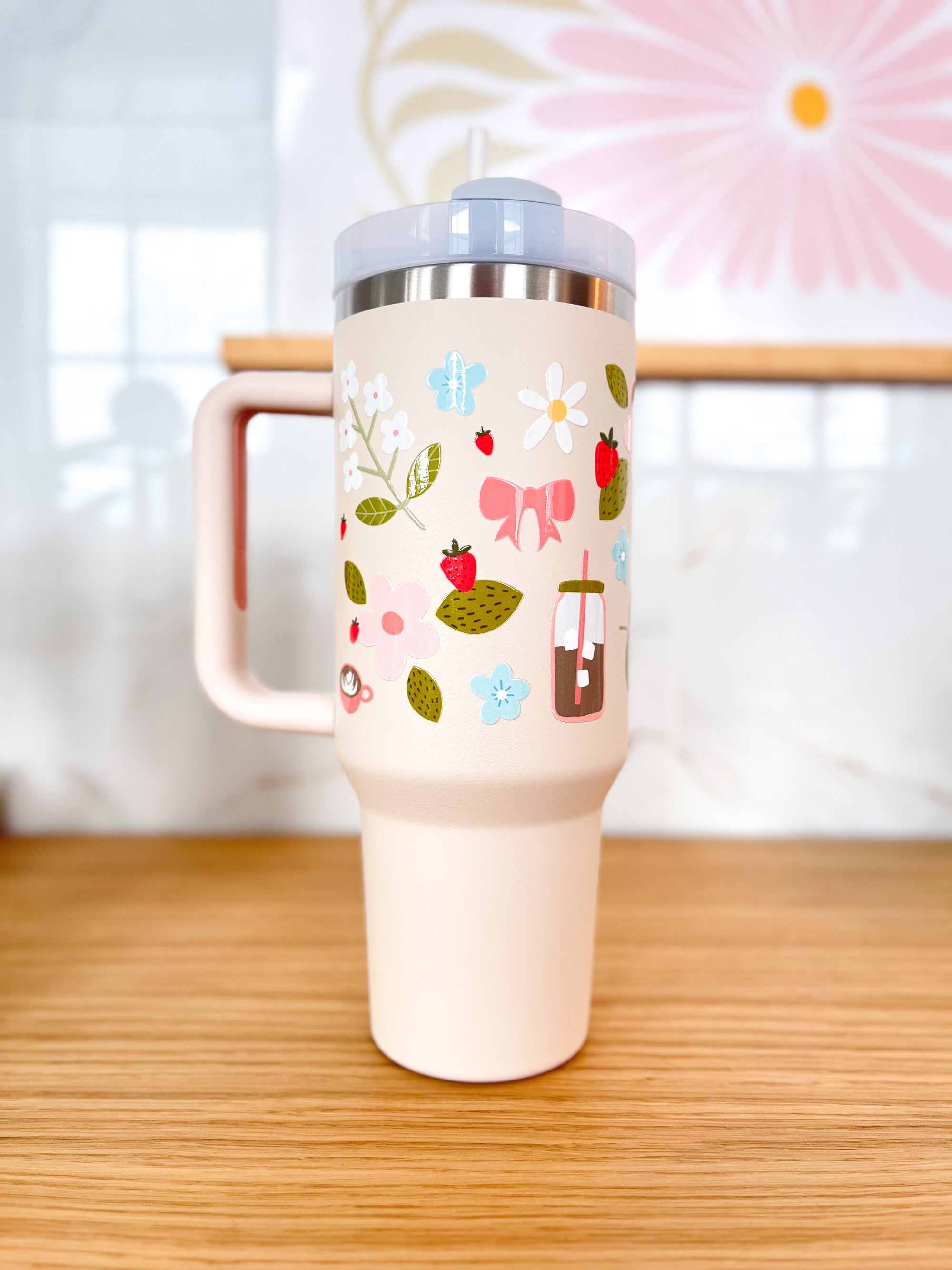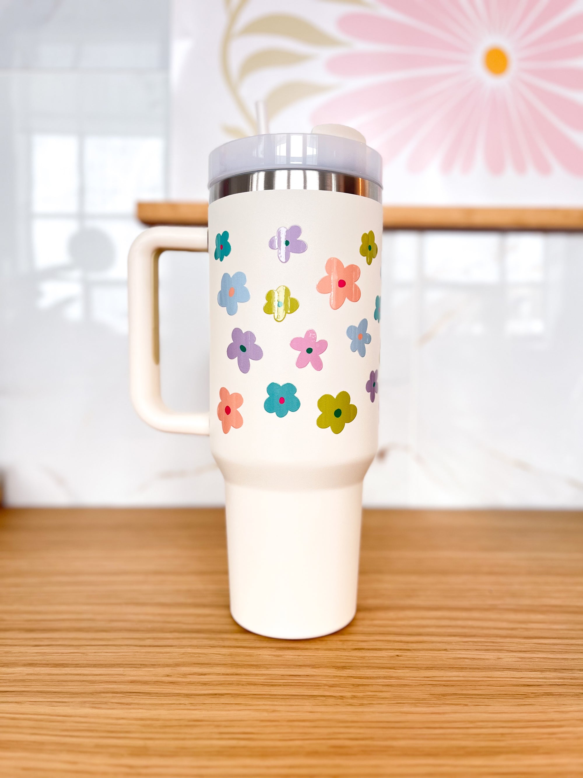IMPARFAIT - Gobelet 40oz - crème Fleurs pastels (léger défaut)