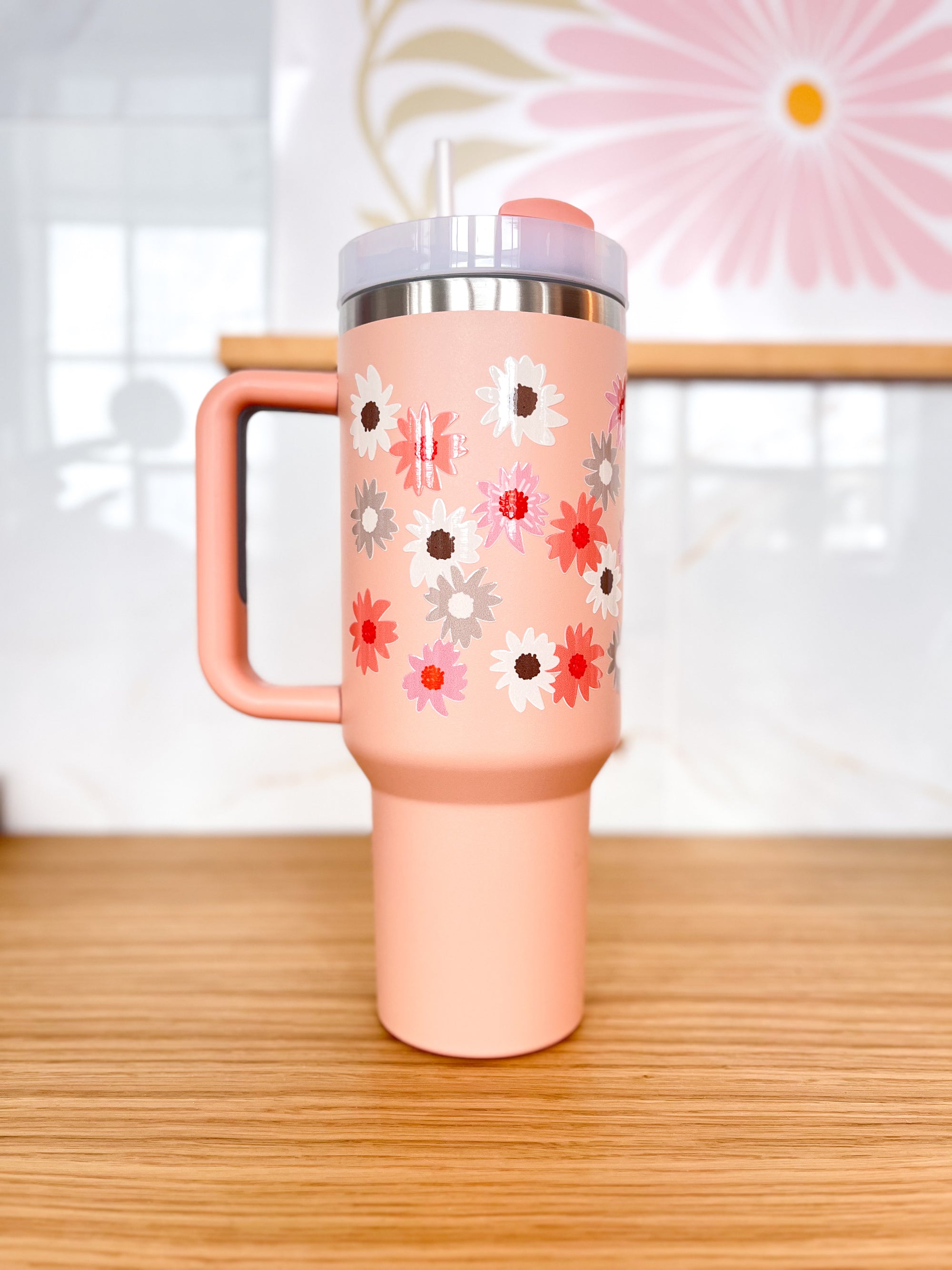 IMPARFAIT - Gobelet 40oz - rose pâle Fleurs & café (léger défaut)