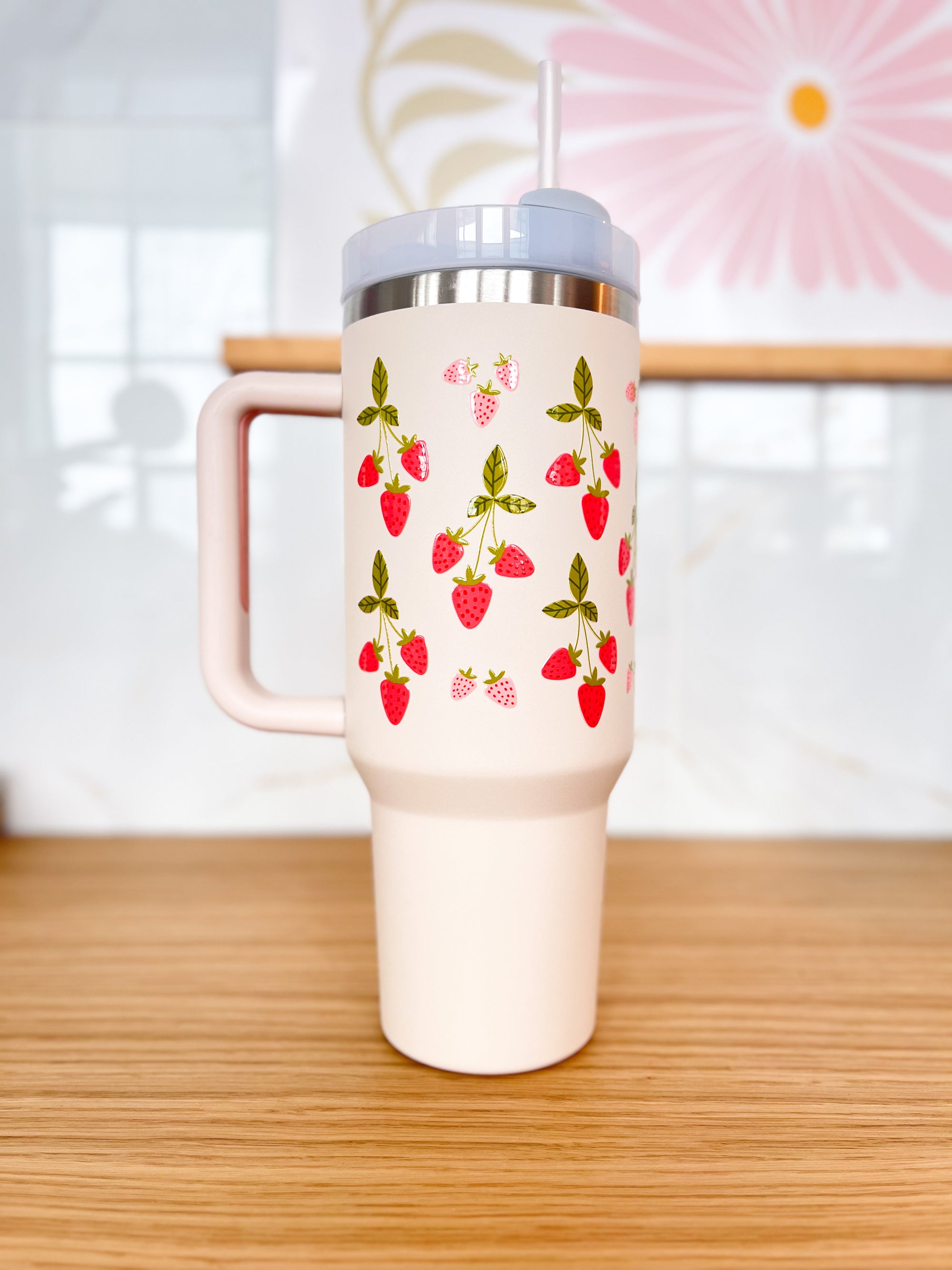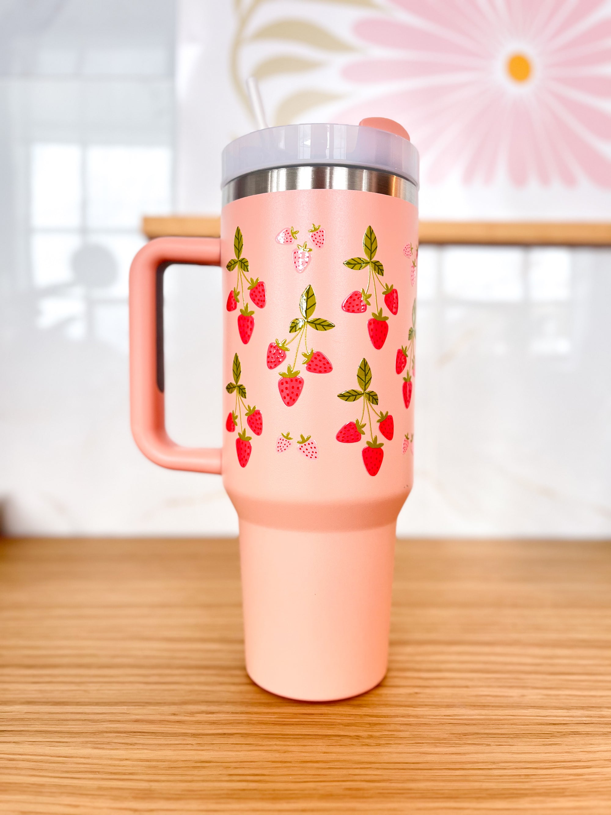 IMPARFAIT - Gobelet 40oz - rose pâle Fraises du Québec (léger défaut)