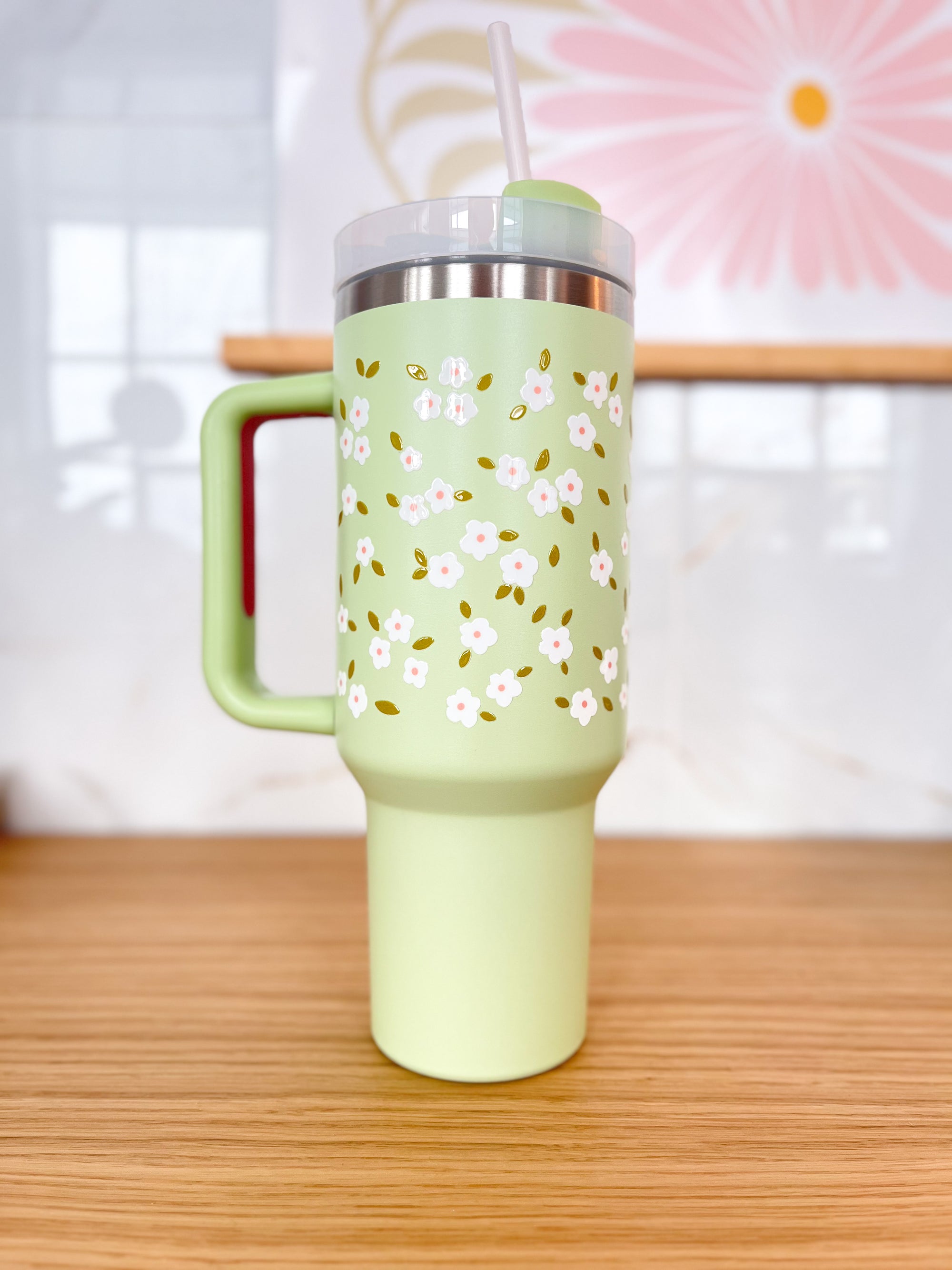 IMPARFAIT - Gobelet 40oz - vert lime Bloom blanc (léger défaut)