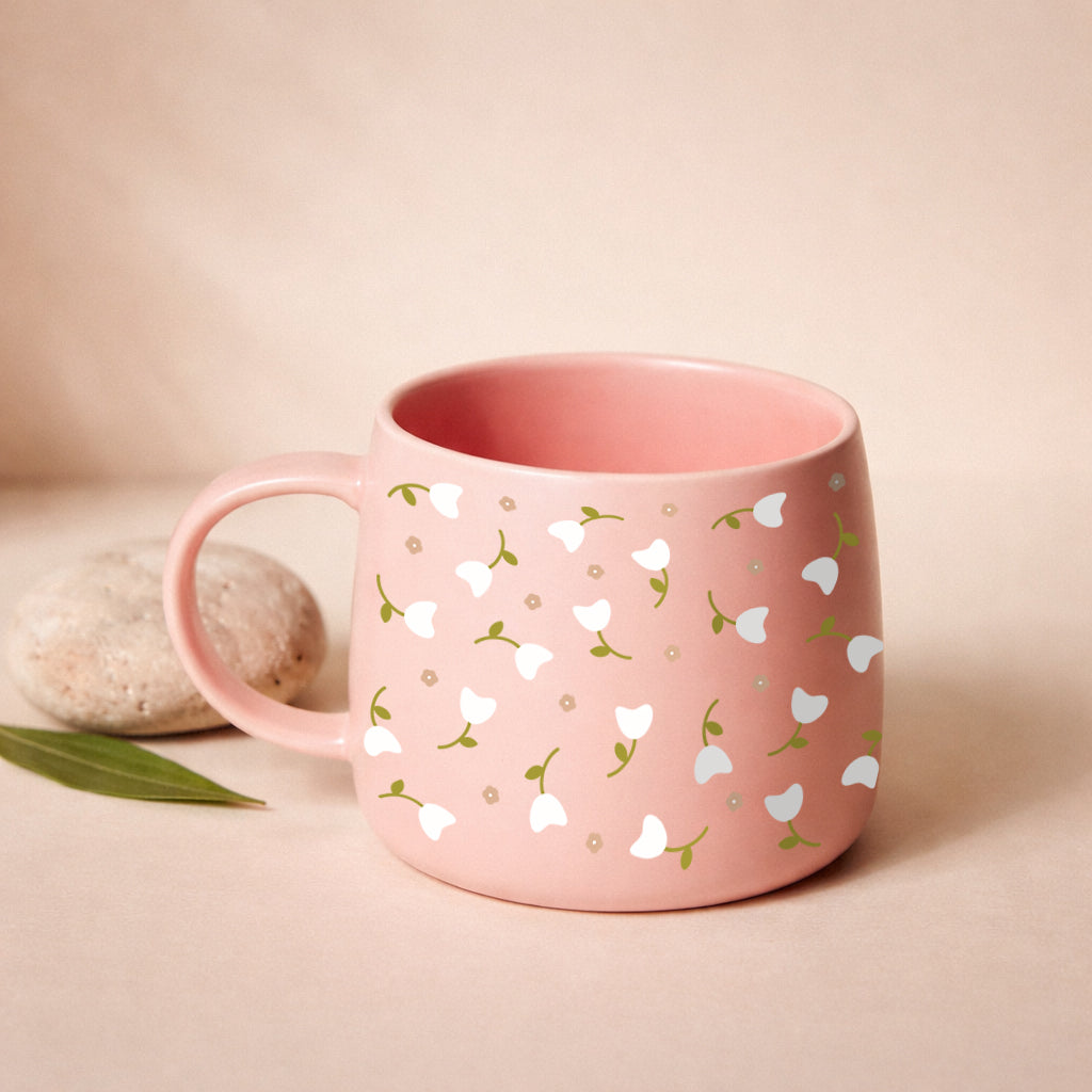 Tasse en céramique rose pâle - Tulipes blanches